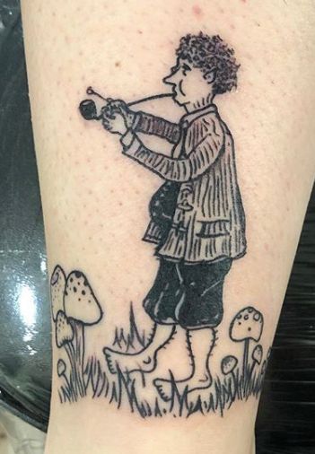 This design immortalizes Boromir’s heroic sacrifice. Although struck by many arrows, Boromir is seen in his Gondorian uniform with his sword at the ready. Bright colors around him make his green cloak and red tunic stand out and the flowers make the mood a little less heavy. Men who get this tattoo are expressing loyalty, bravery and awareness of the heavy losses caused by war in Middle-earth. It’s a fitting tribute for fans drawn to the more emotional depth of Tolkien’s tale.